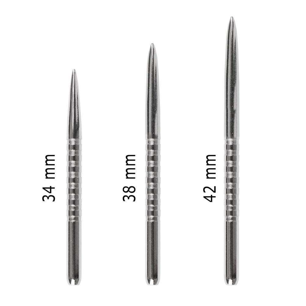 Ein hohes Gripniveau zeichnet den GP3 Dart Point aus. Der Grip des maschined-Tip GP3 liegt sehr gut in der Hand und gibt dem Spieler mehr Kontrolle über seinen Dart. Ein solcher Grip am Tip kann vor allem für Spieler, die den Dart weit vorne führen, ein echter Vorteil sein, der sich auch bei der Treffsicherheit auszahlen kann. Dieser Tip wurde in Zusammenarbeit mit den BULL'S Team Dartprofis entwickelt. Der GP3 ist in den Längen 34 mm, 38 mm und 42 mm erhältlich.